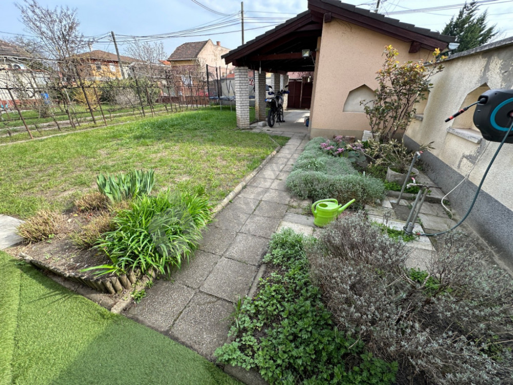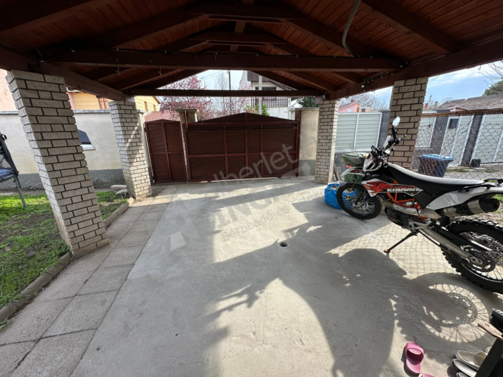 Private yard with covered carport and external storage.