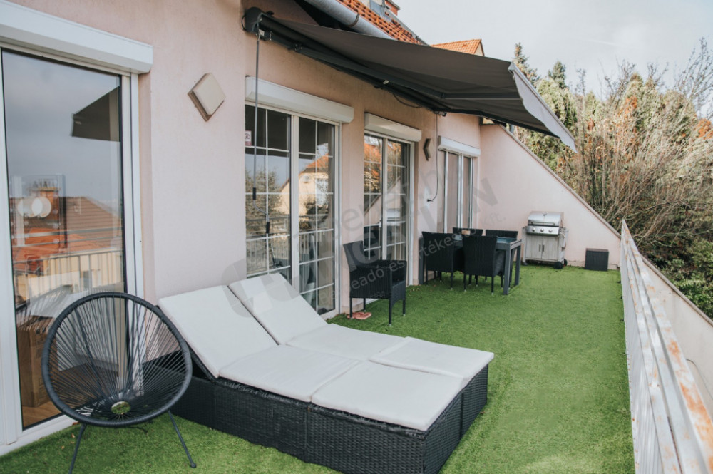 From the 34m2 terrace, a breathtaking panorama of the Danube and Northern Budapest, in clear weather you can see to Vác and the Gödöllő Hills. It is covered with artificial grass and is also perfect for gatherings with friends.