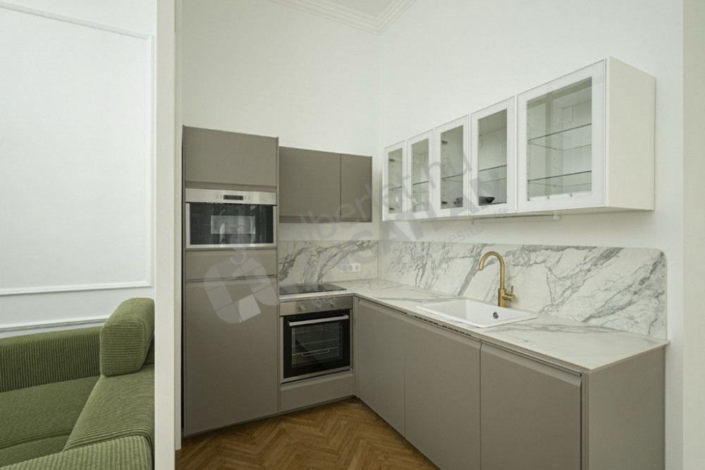 It is furnished and the kitchen is equipped with all the necessary household appliances. The apartment is air-conditioned, so it provides a comfortable temperature even in the summer months.