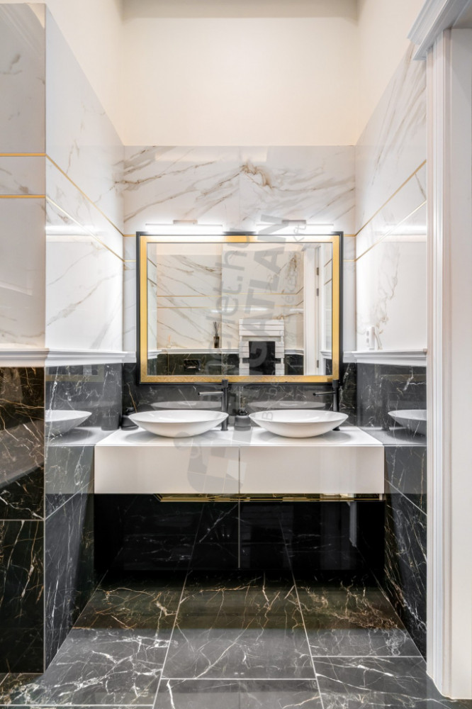 The bathrooms are equipped with premium quality tiles and sanitary ware (Grohe, Teka), and the mirrors are uniquely designed and made with artisanal techniques.