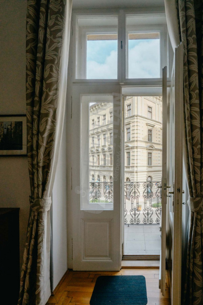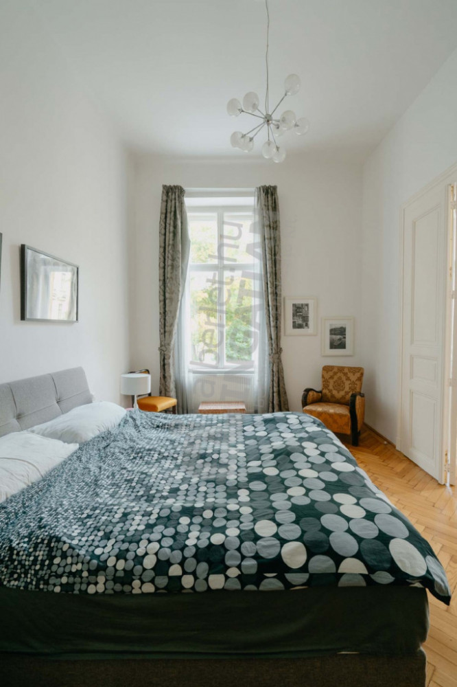 Two bathrooms, a spacious, bright bourgeois apartment with a huge kitchen-dining room, study, balcony.