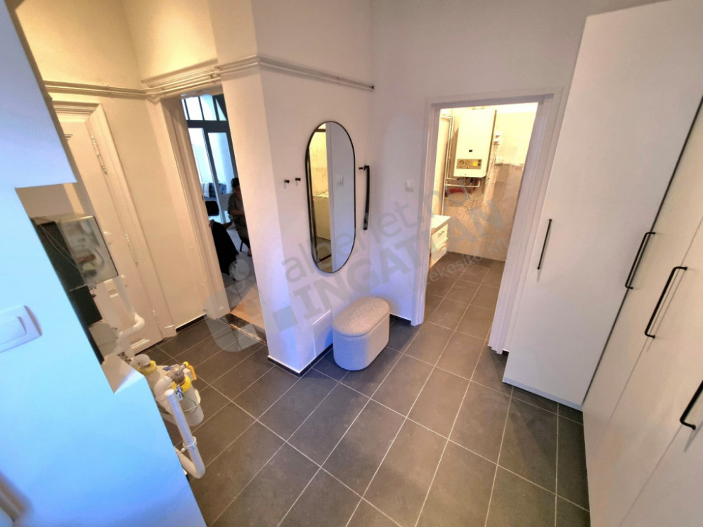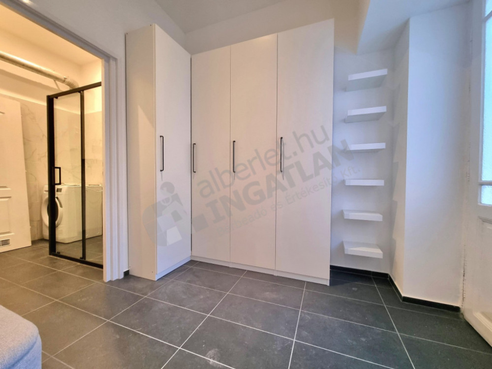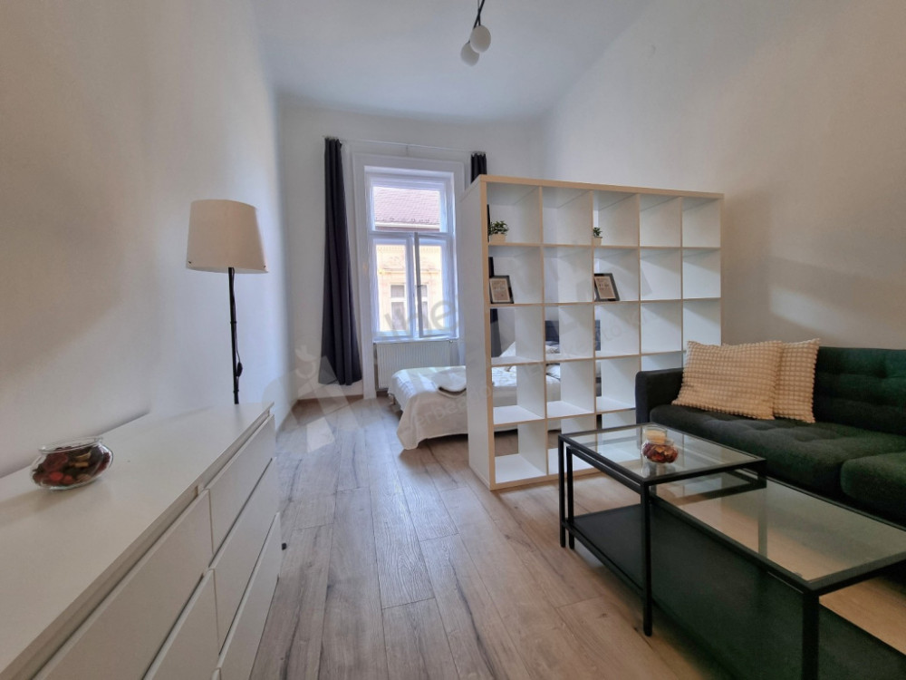 The apartment has a furnished and mechanized living room with an American kitchen, a separate bedroom, a spacious bathroom and a separate toilet. The 320 cm ceiling height and the southwest orientation provide a bright, spacious feel. The heating and hot water supply works with a circulating system, the apartment is air-conditioned.