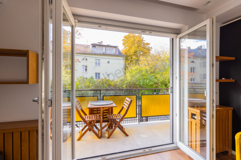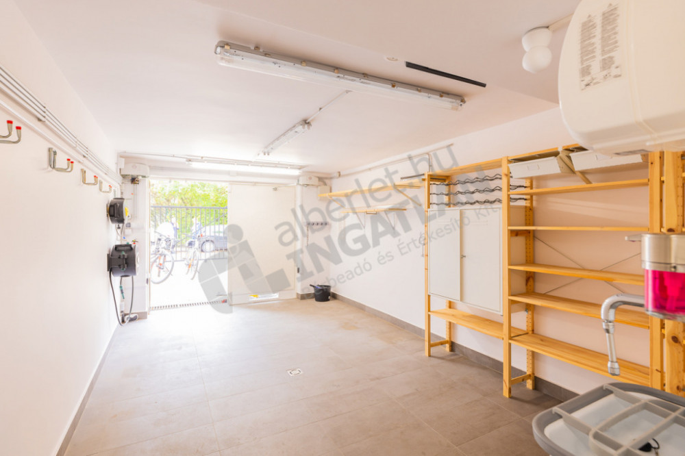 Spacious balcony, 25m2 garage (included in the price), parking space in front of it, cellar storage and exclusive garden area.